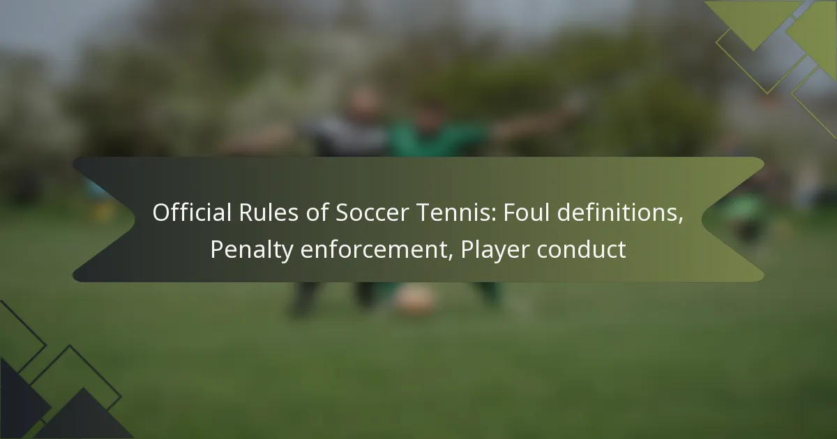 Penalty enforcement in soccer tennis occurs when a foul is committed, resulting in a free point or a replay of the point, depending on the severity of the infraction. The enforcement process typically involves the referee or designated official making a judgment call based on the rules outlined in official documentation.