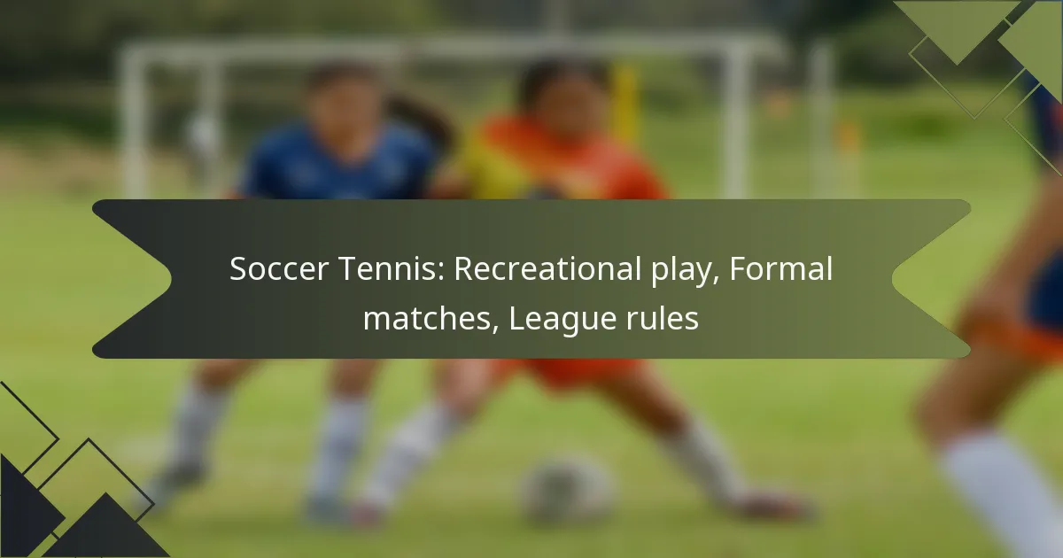 Soccer tennis is a recreational sport that combines elements of soccer and tennis, where players use their feet to hit a ball over a net. It can be played casually or in formal matches, making it a versatile activity for various skill levels.